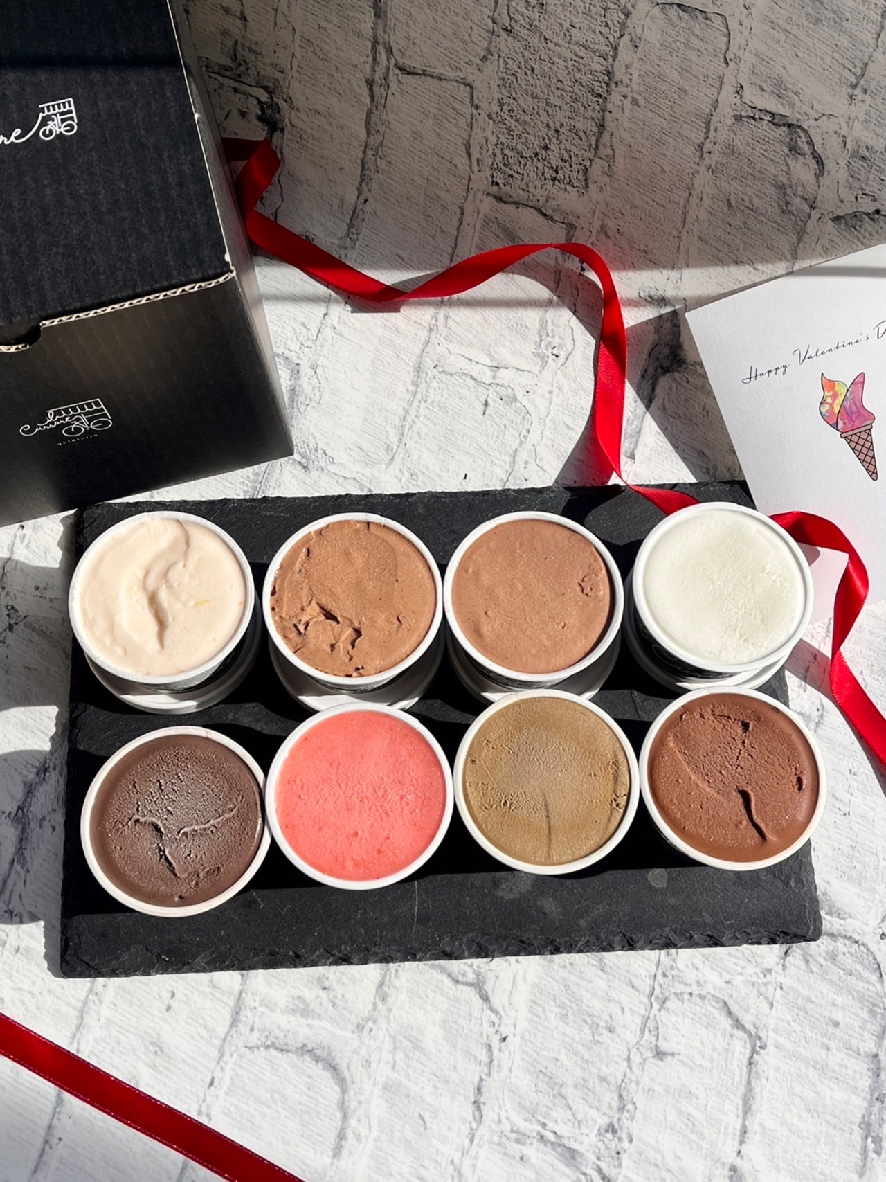チョコフレーバーに合ういちごのソルベとコクのあるミルクも加わった贅沢な詰め合わせ。